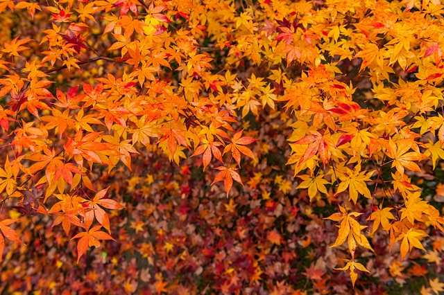 京都美麗的紅葉季節,滿天黃綠紅的楓葉