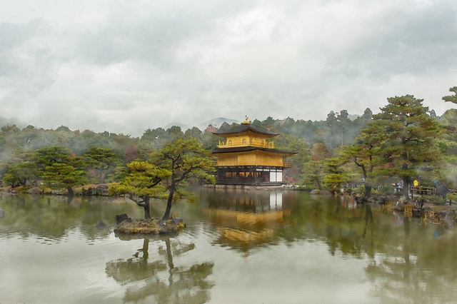 水彩風的金閣寺 日本京都