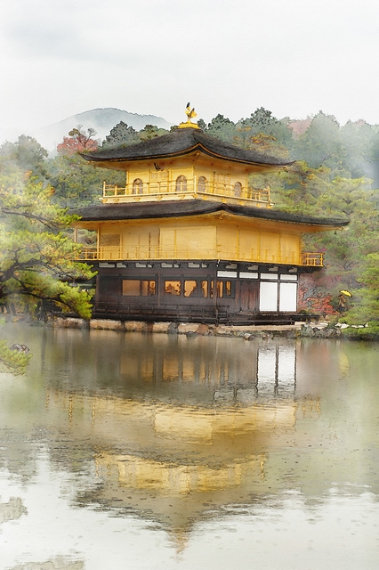 水彩風的金閣寺 日本京都
