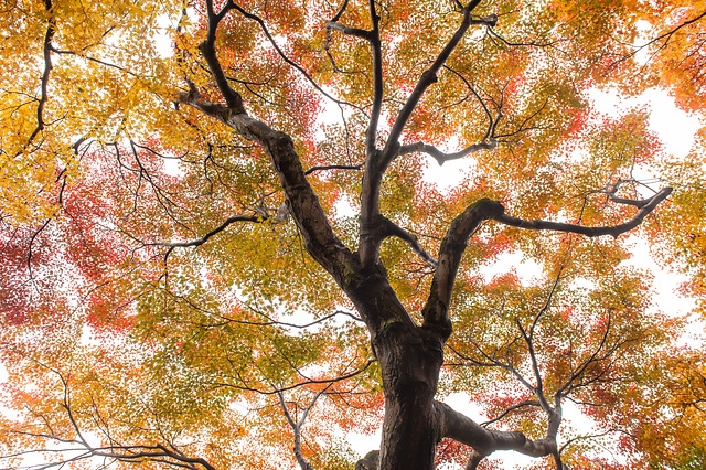 京都美麗的紅葉季節,滿天黃綠紅的楓葉