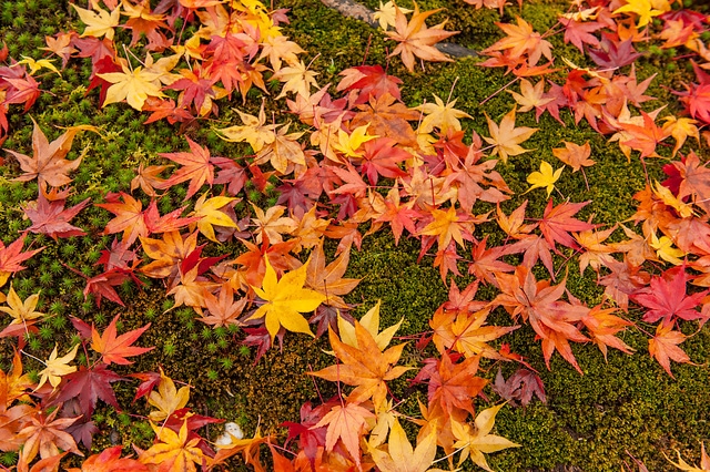 京都美麗的紅葉季節,滿天黃綠紅的楓葉
